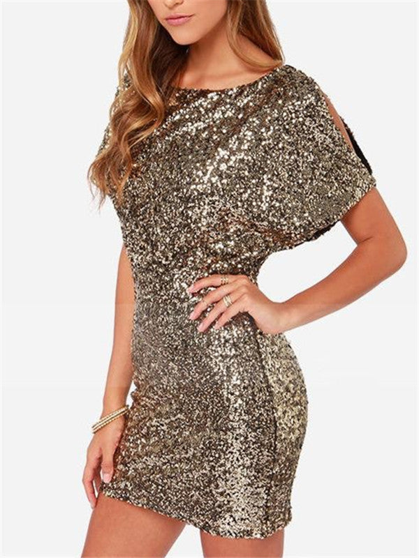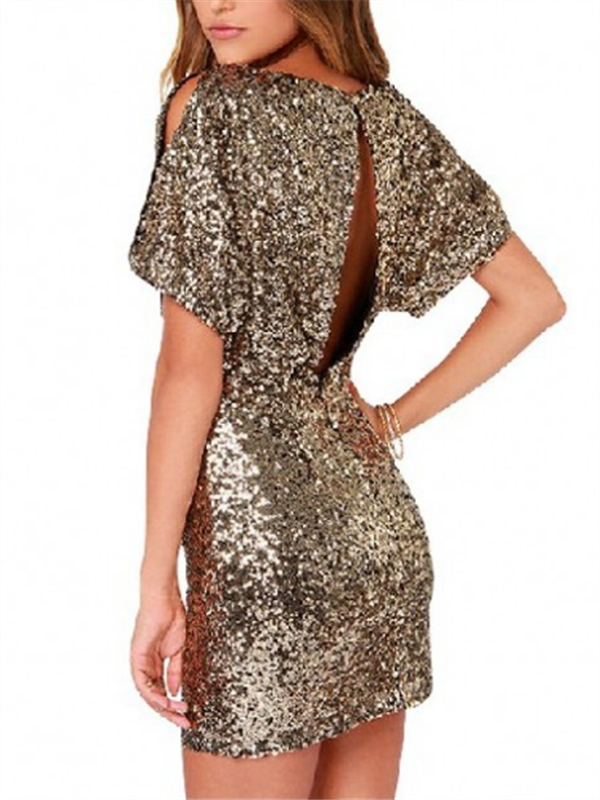WealFeel Golden Sequin Halter Slim Bodycon Dress