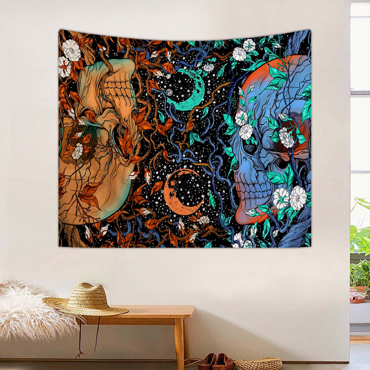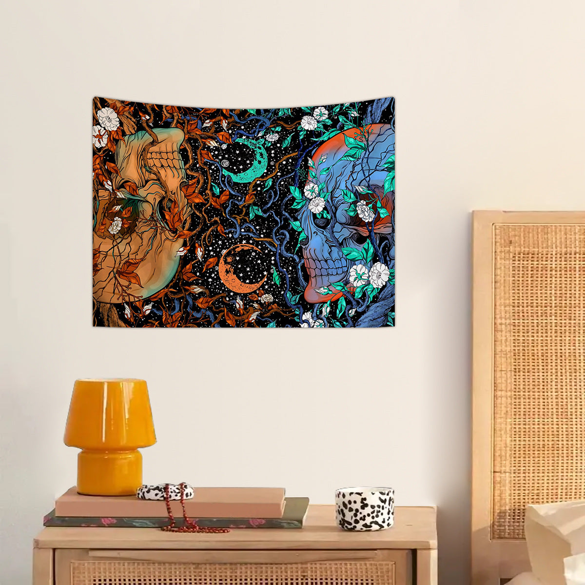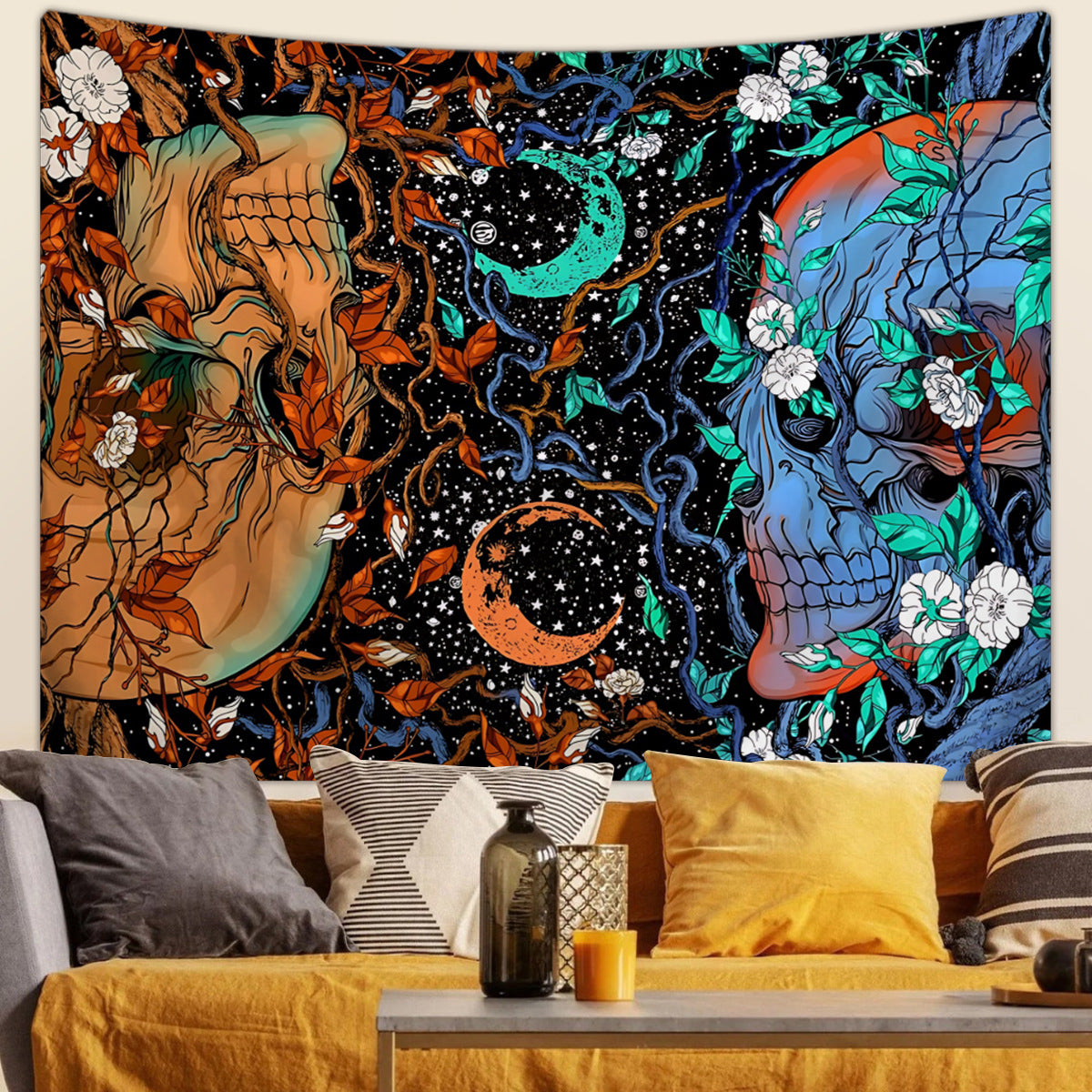 Ethereal Realm Tapestry: Where Skulls Meet Blooms in Cosmic Harmony