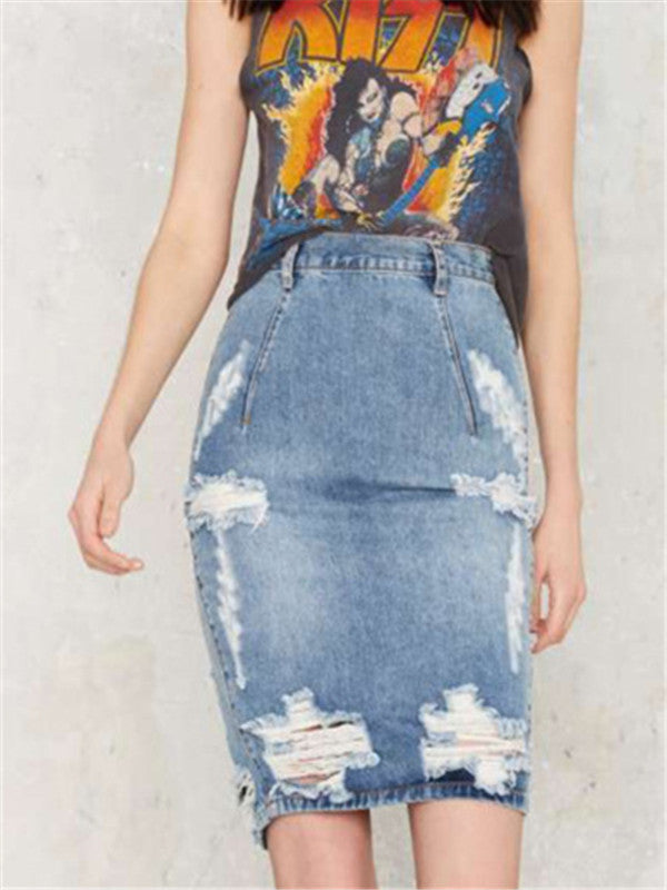 WealFeel Sexy Ripped Denim Bodycon Skirt - WealFeel