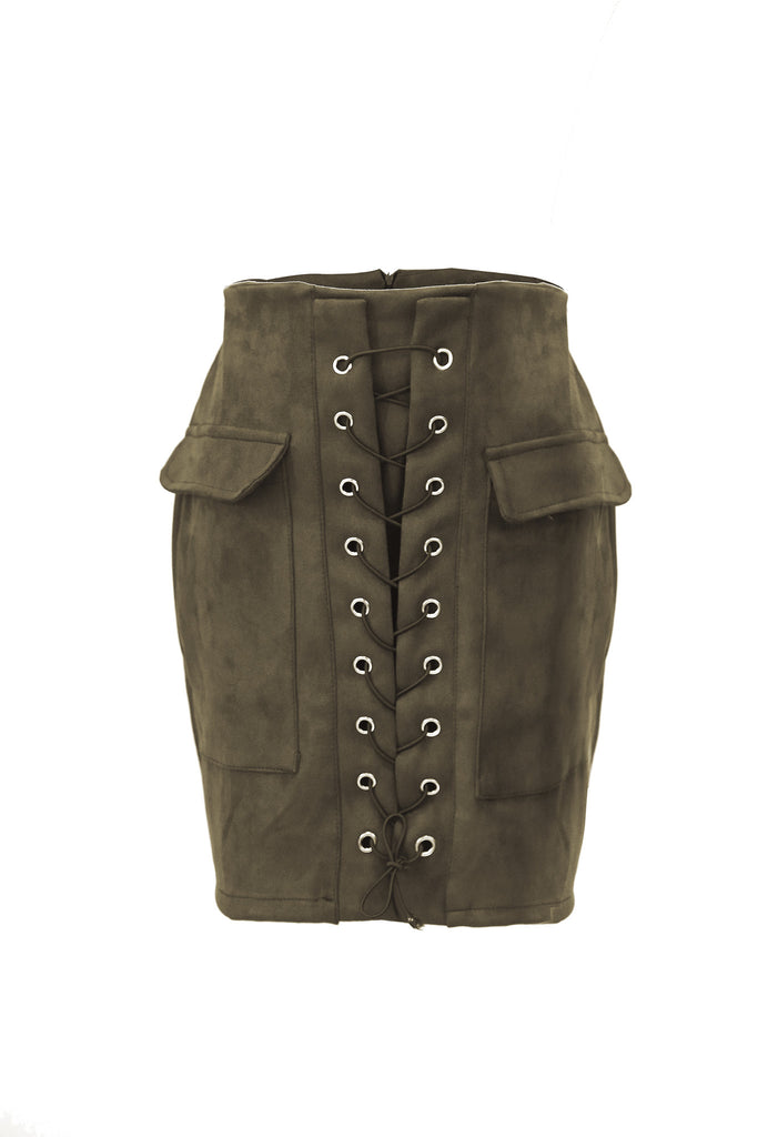 Faux Suede Lace-up Mini Skirt - WealFeel