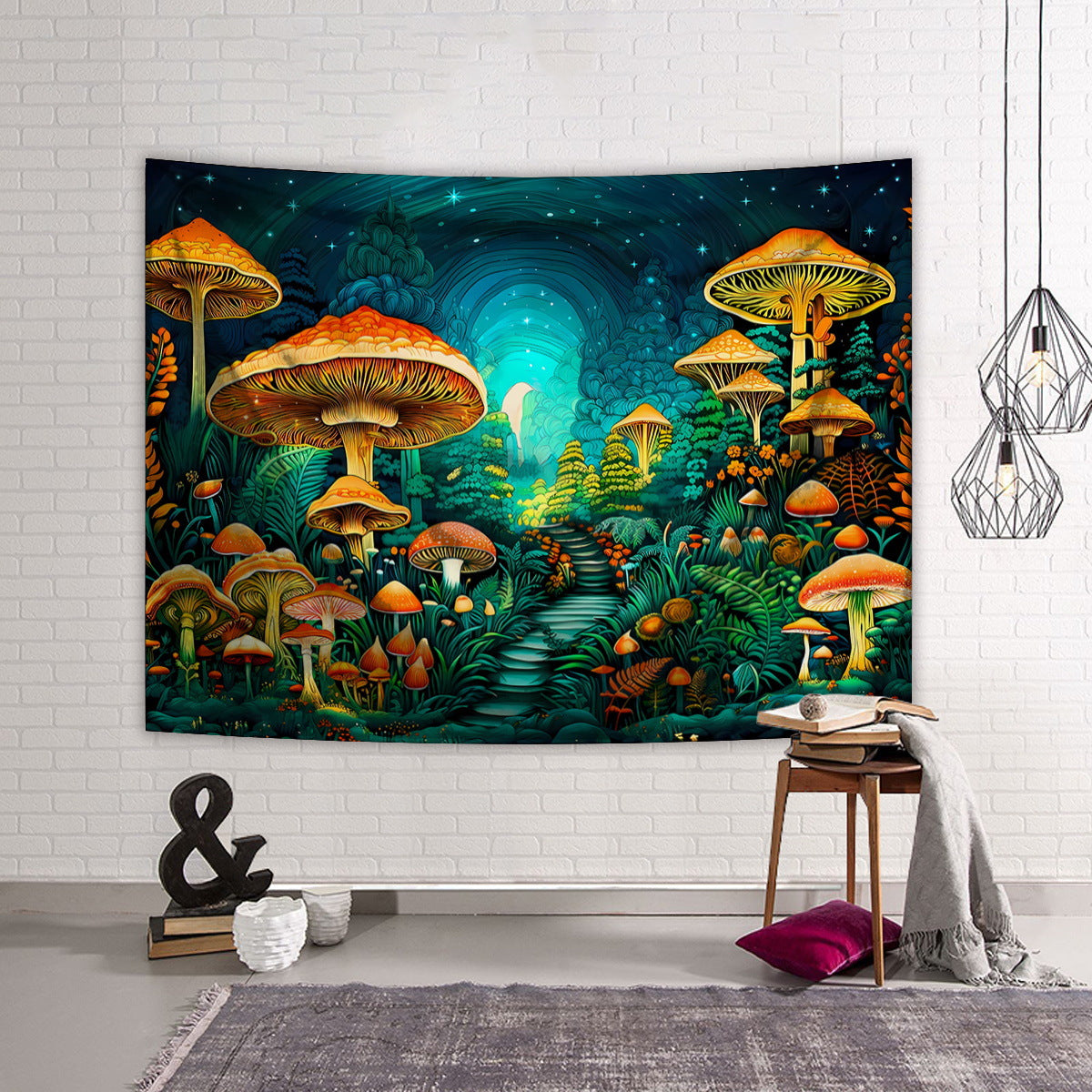 Step into a magical world with our vibrant mushroom forest tapestry—where glowing fungi, starlit skies, and lush greenery come to life on soft, durable fabric. Perfect for adding depth and wonder to any room, this piece blends artistry with effortless style.