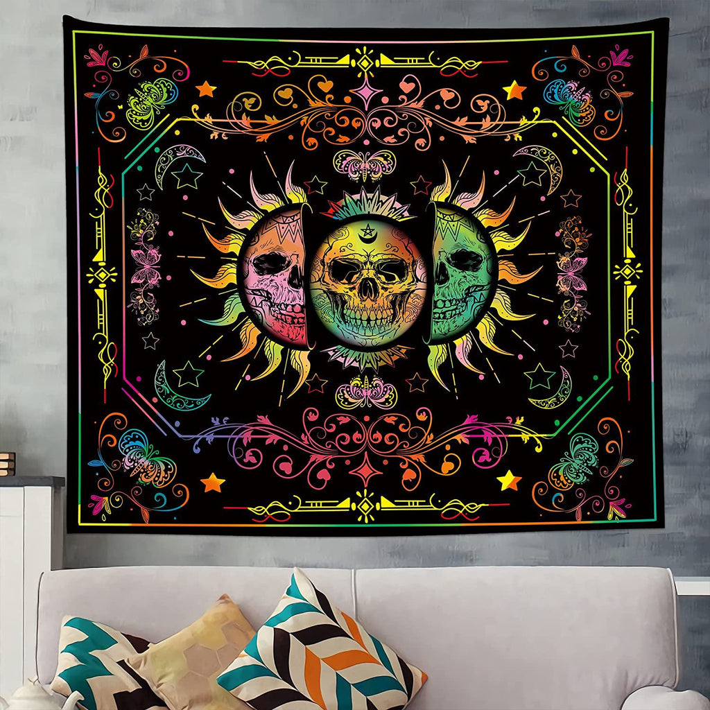 „Bitte vor dem Kauf beachten: Dieser Wandteppich ist UV-reaktiv und leuchtet nur unter Schwarzlicht (UV-Licht). Ein Schwarzlicht ist nicht im Lieferumfang enthalten und muss separat erworben werden.“