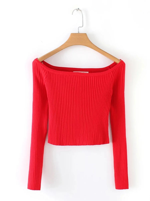 Off-the-Shoulder Sweater Short-Lengths Sling Top