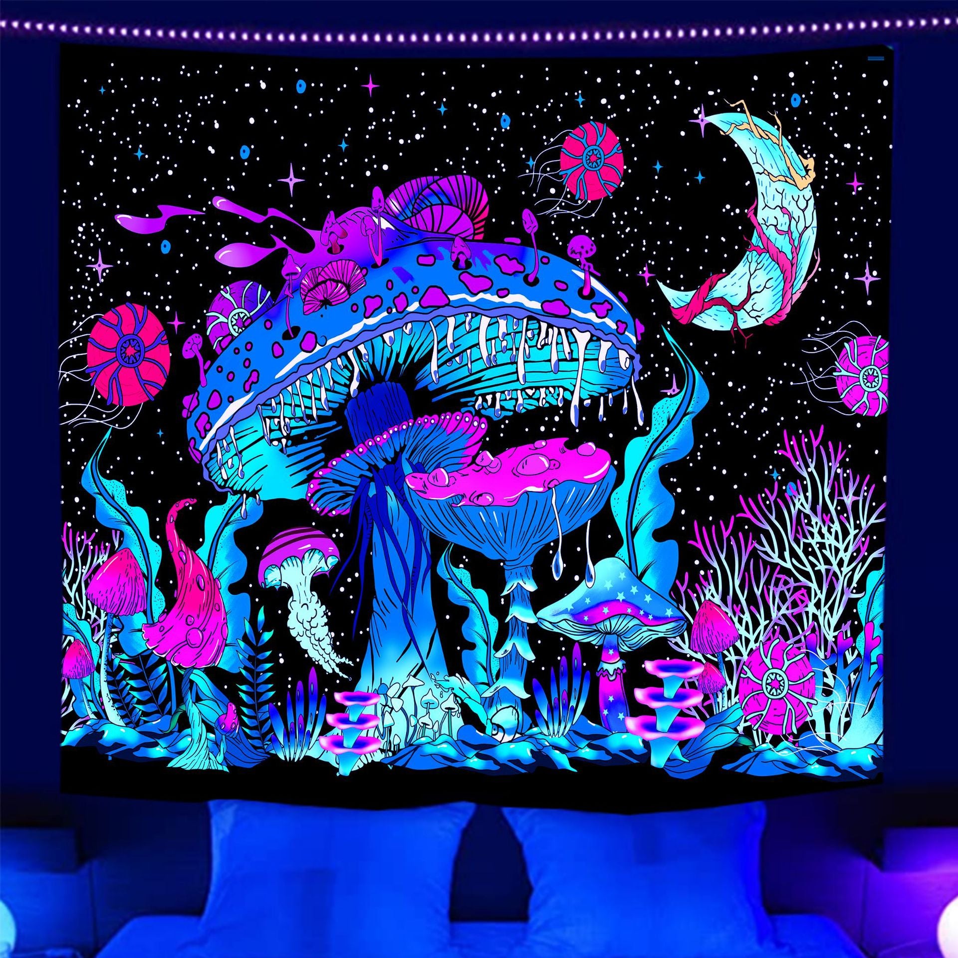 Enchanted Mushroom BlackLight UV Reactive Tapestry