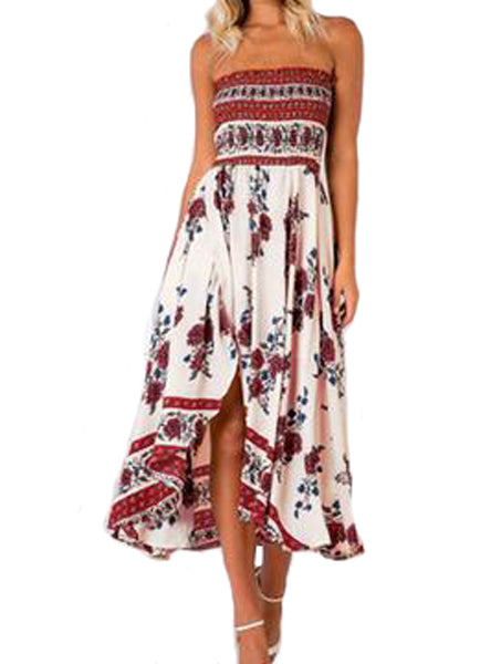 Red Floral Print Strapless One Piece Dress