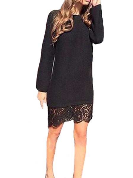 Solid Color Crochet Lace Dress