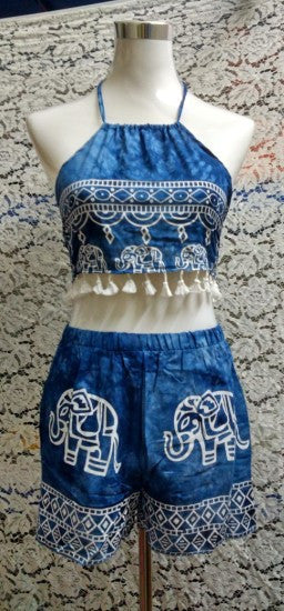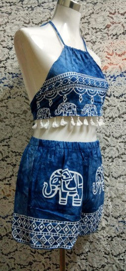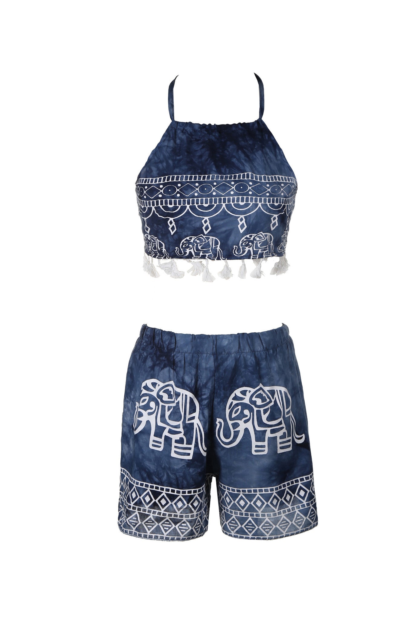 Vintage Tassel Crop Top&Shorts Matching Sets
