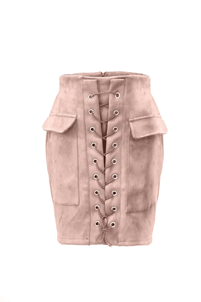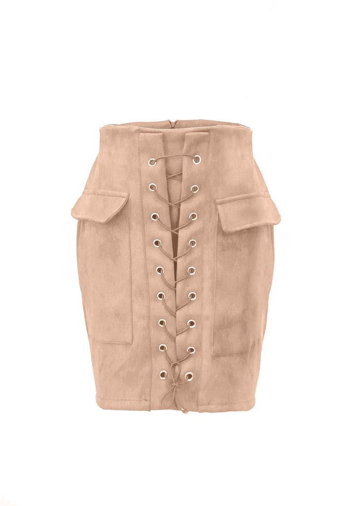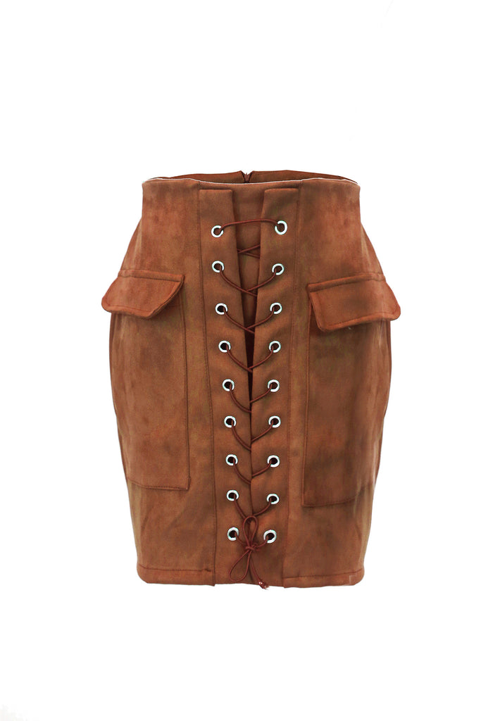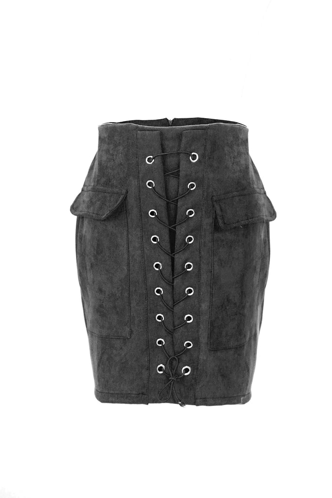 Mini-jupe à lacets en faux daim