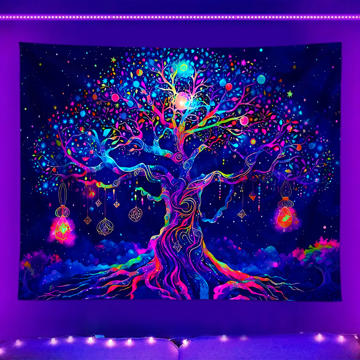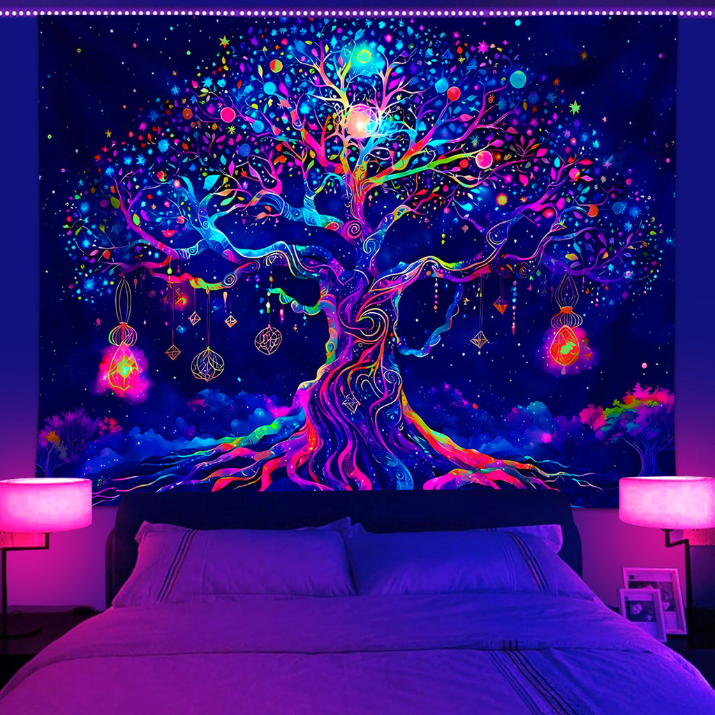 Veuillez noter avant l'achat : cette tapisserie est réactive aux UV et ne brille que sous une lumière noire (UV). La lumière noire n'est pas incluse et doit être achetée séparément.