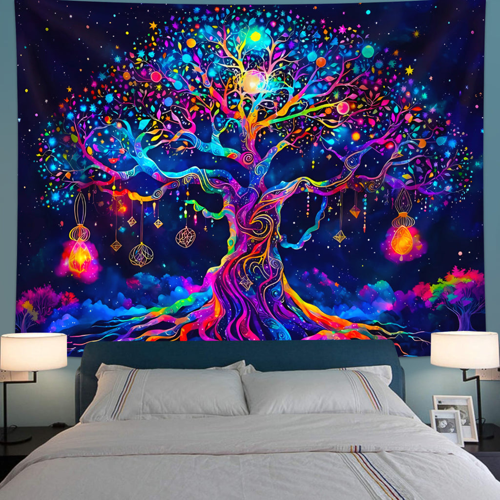 Transform your space into a portal of wonder with our "Cosmic Dreams Tree" Tapestry—a vibrant, hand-detailed masterpiece that blends the magic of nature with the allure of the galaxy. Perfect for dreamers, bohemians, and anyone who craves a touch of whimsy in their sanctuary, this tapestry isn’t just decor—it’s a portal to your imagination.