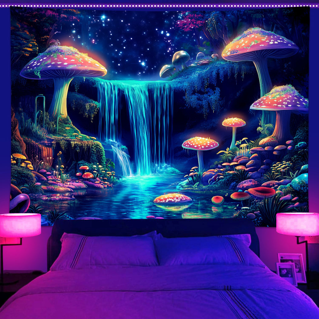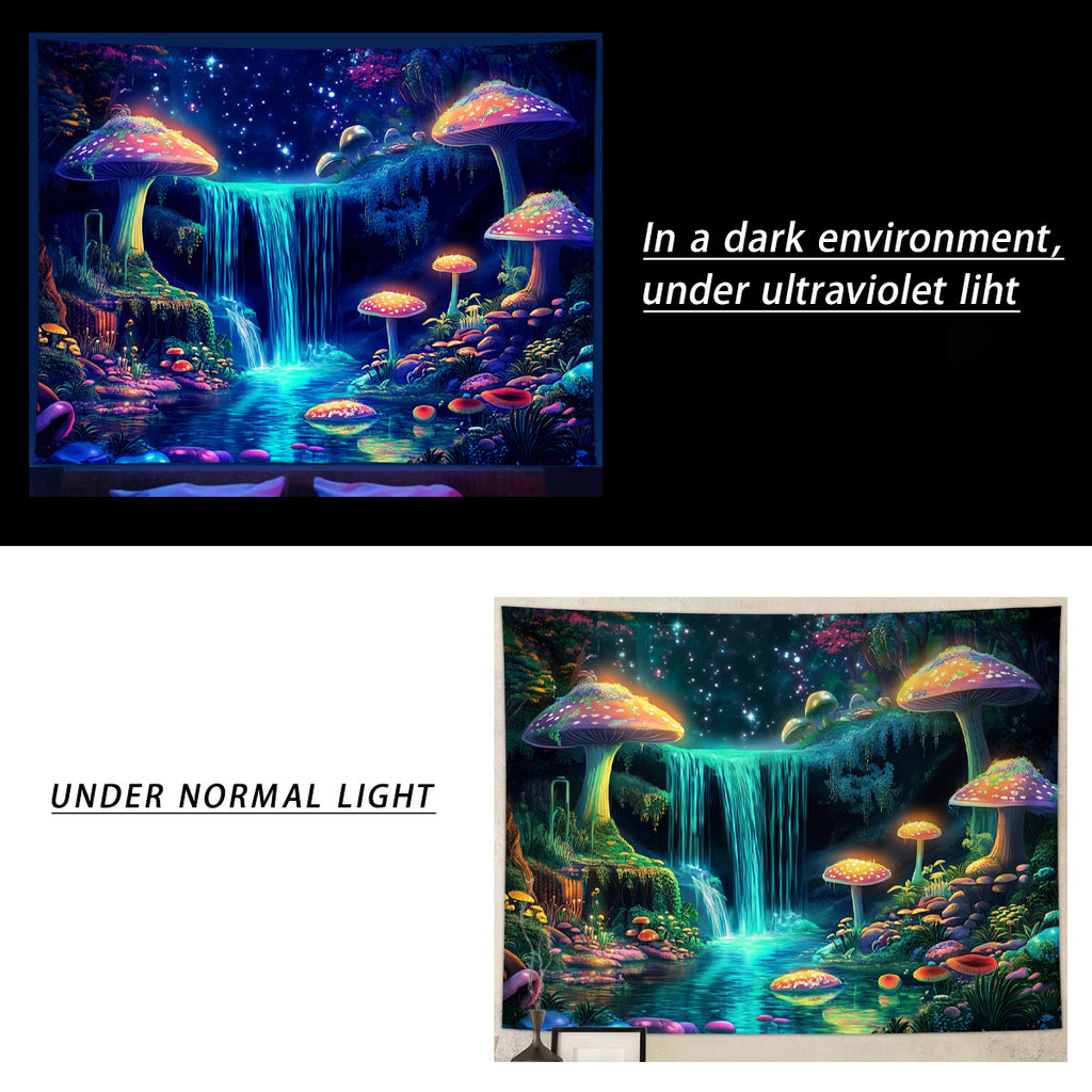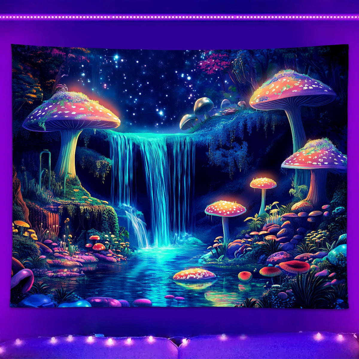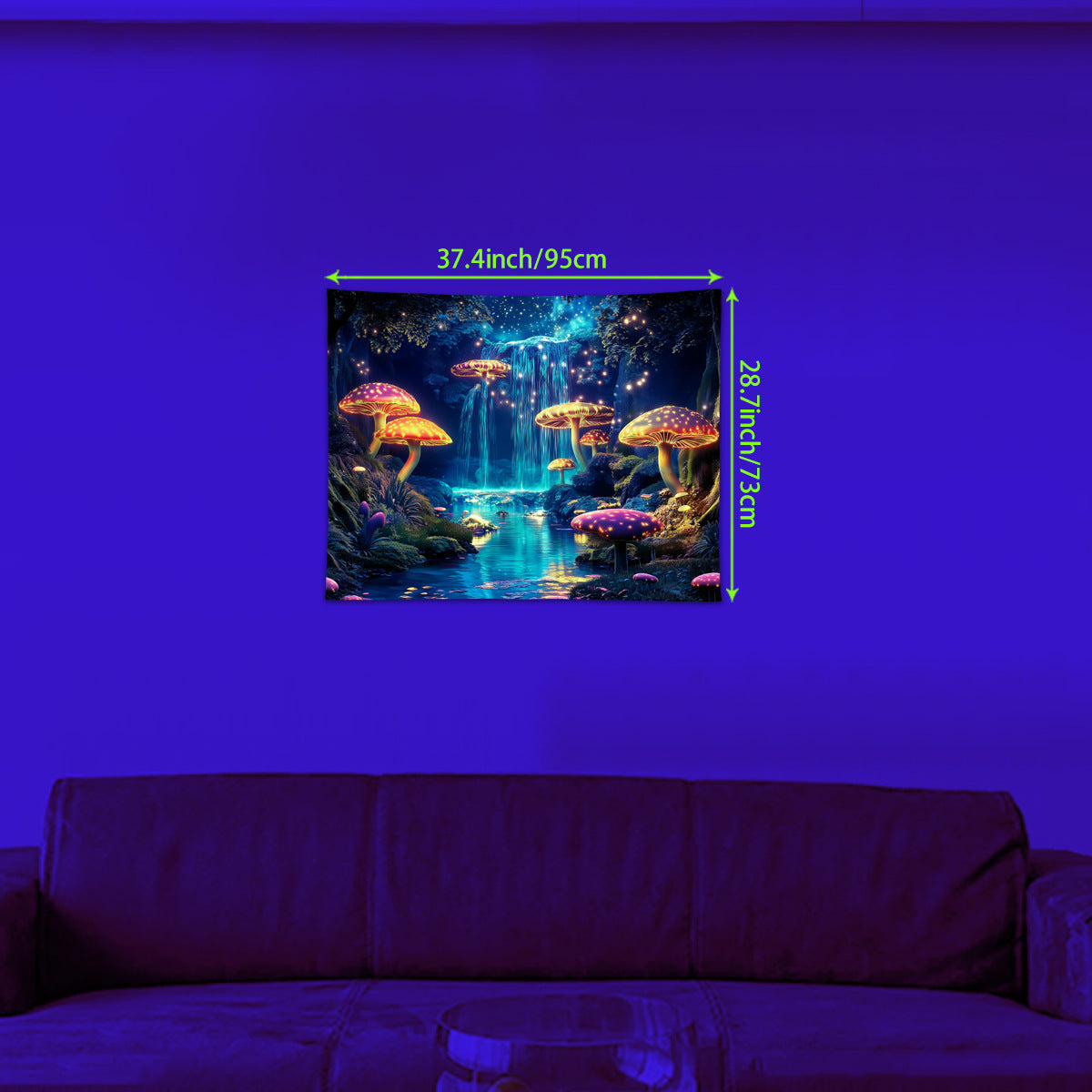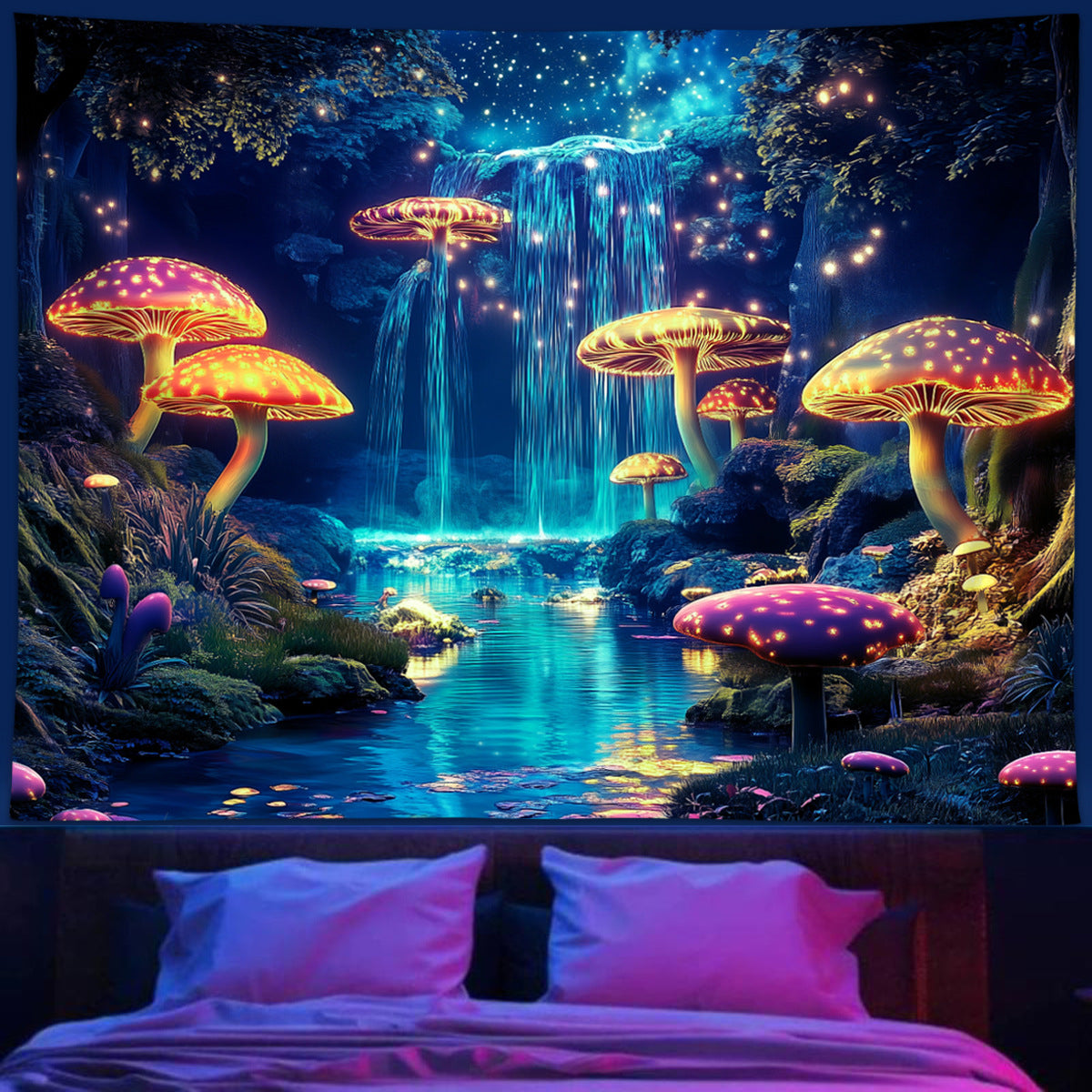 Enchanted Mushroom UV Rective Tapestry: Transform Your Space into a Magical Midnight Wonderland