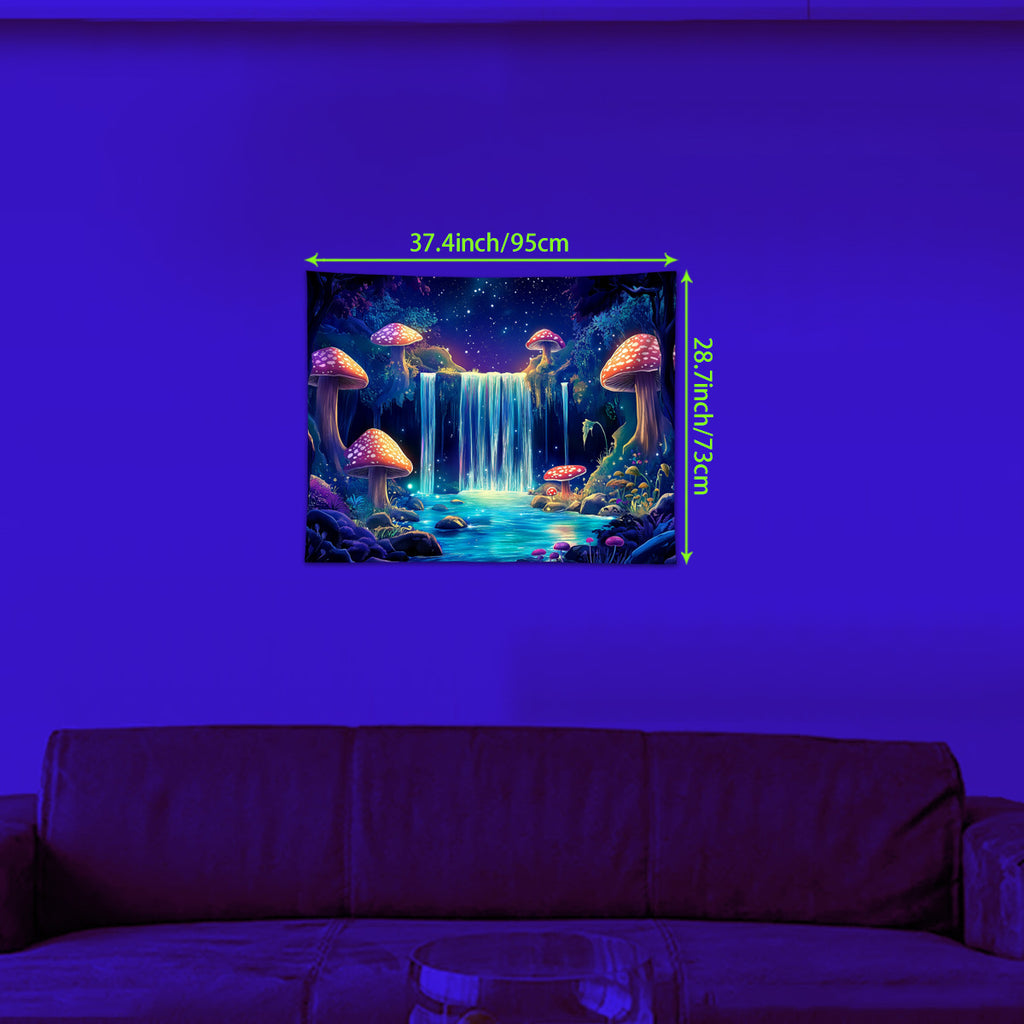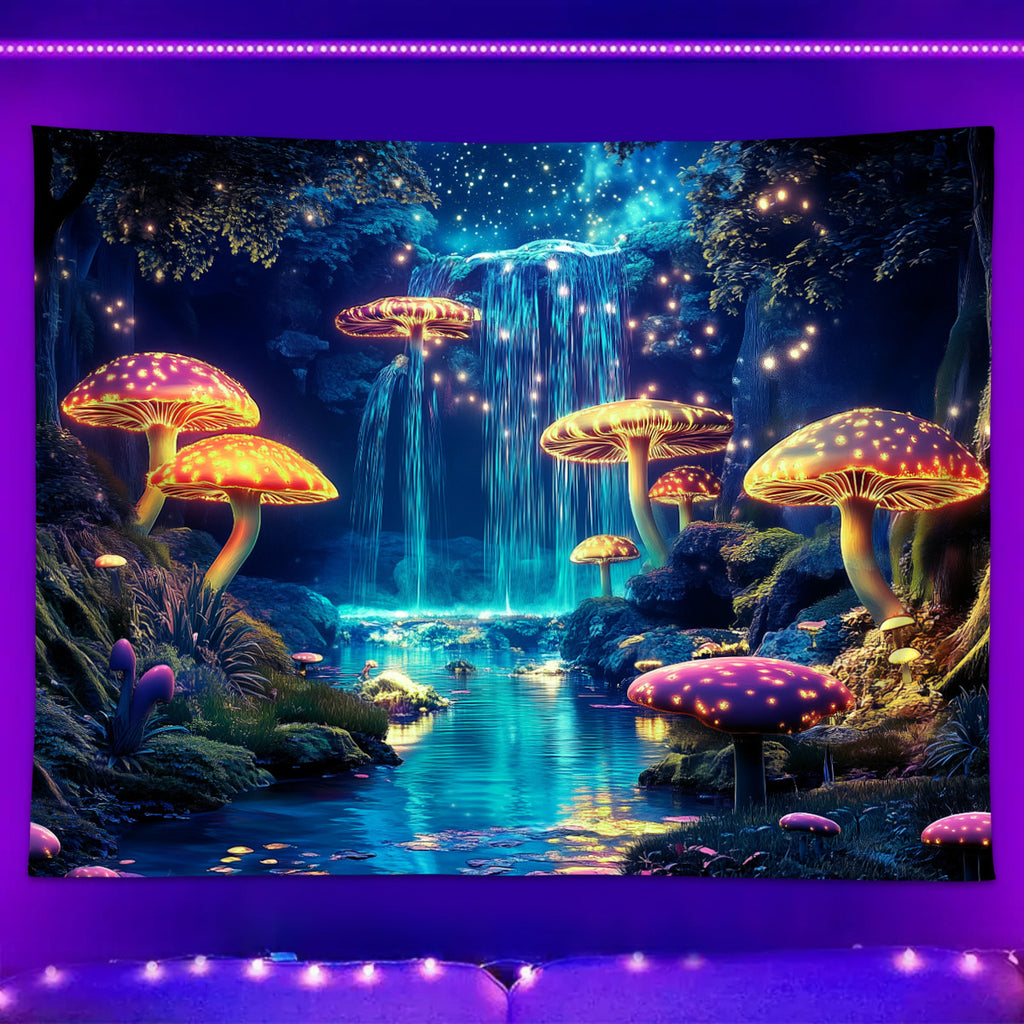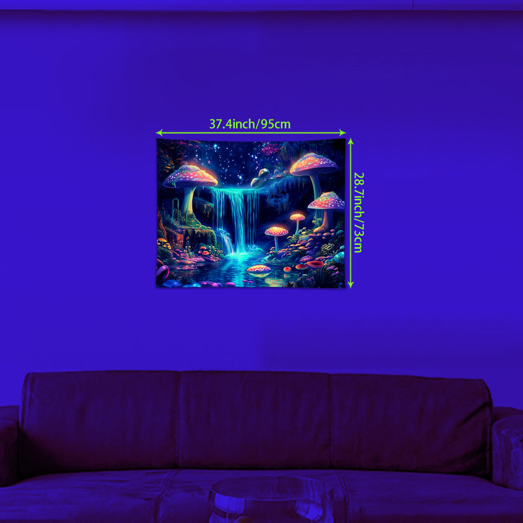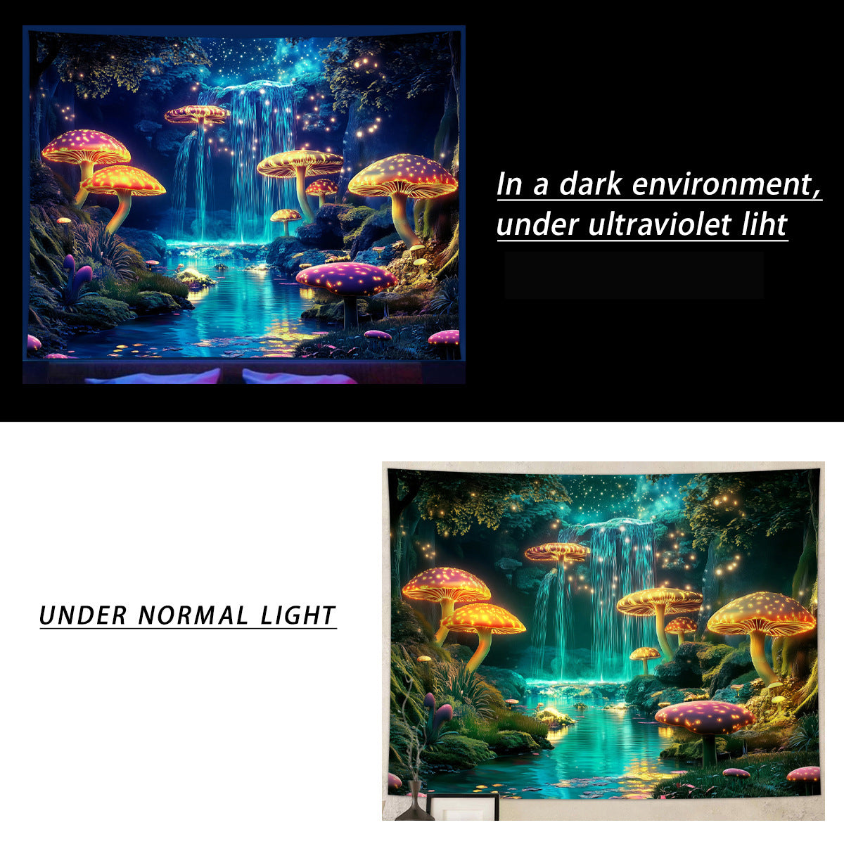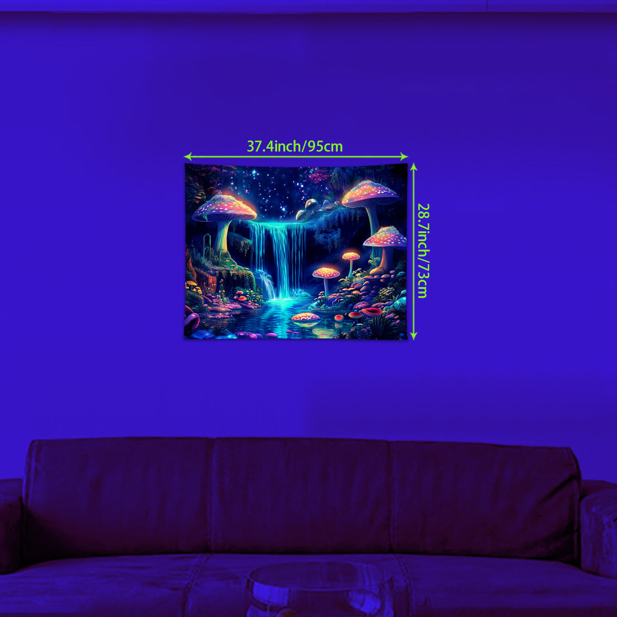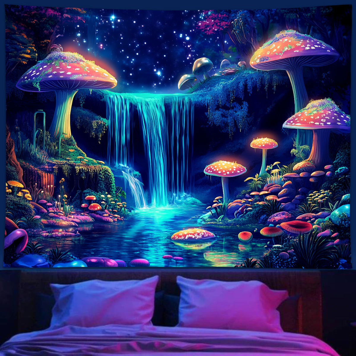 Enchanted Mushroom UV Rective Tapestry: Transform Your Space into a Magical Midnight Wonderland
