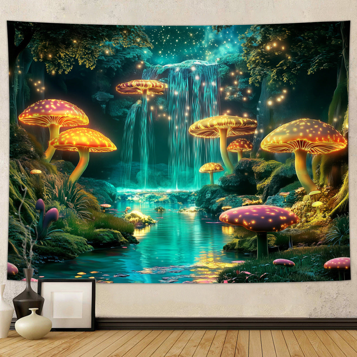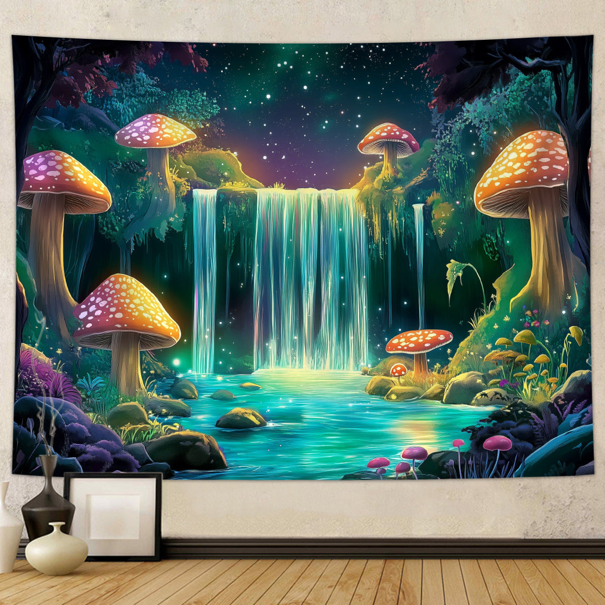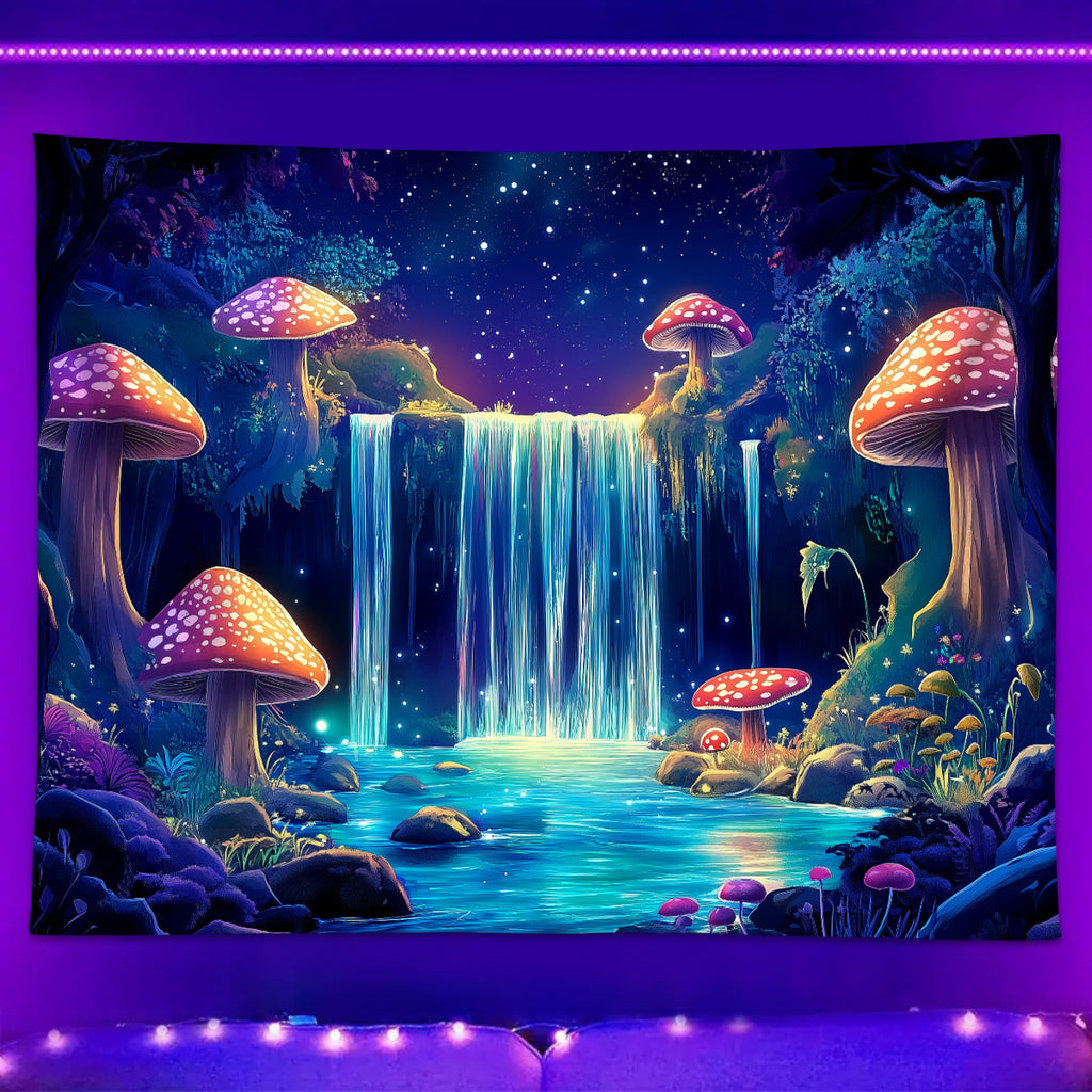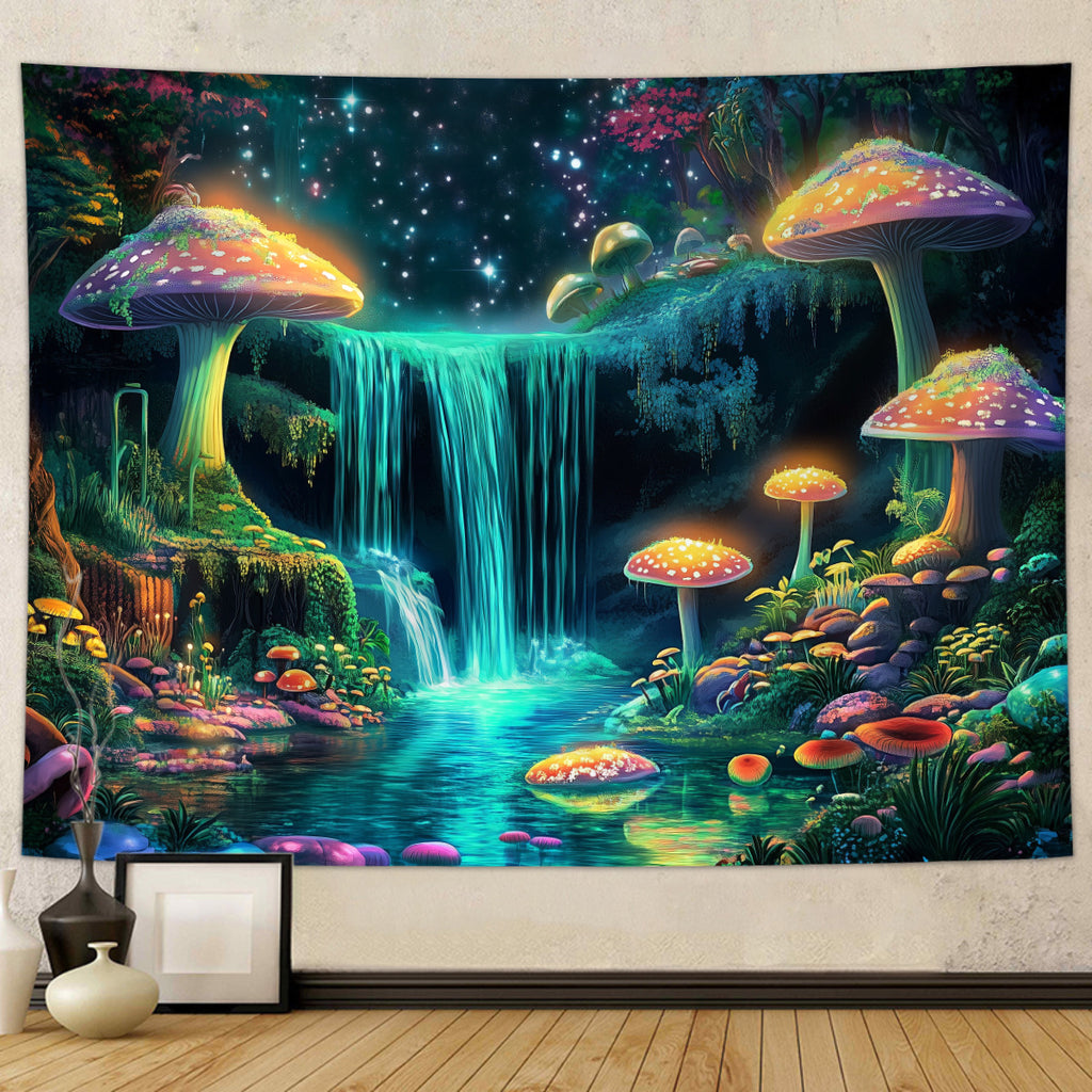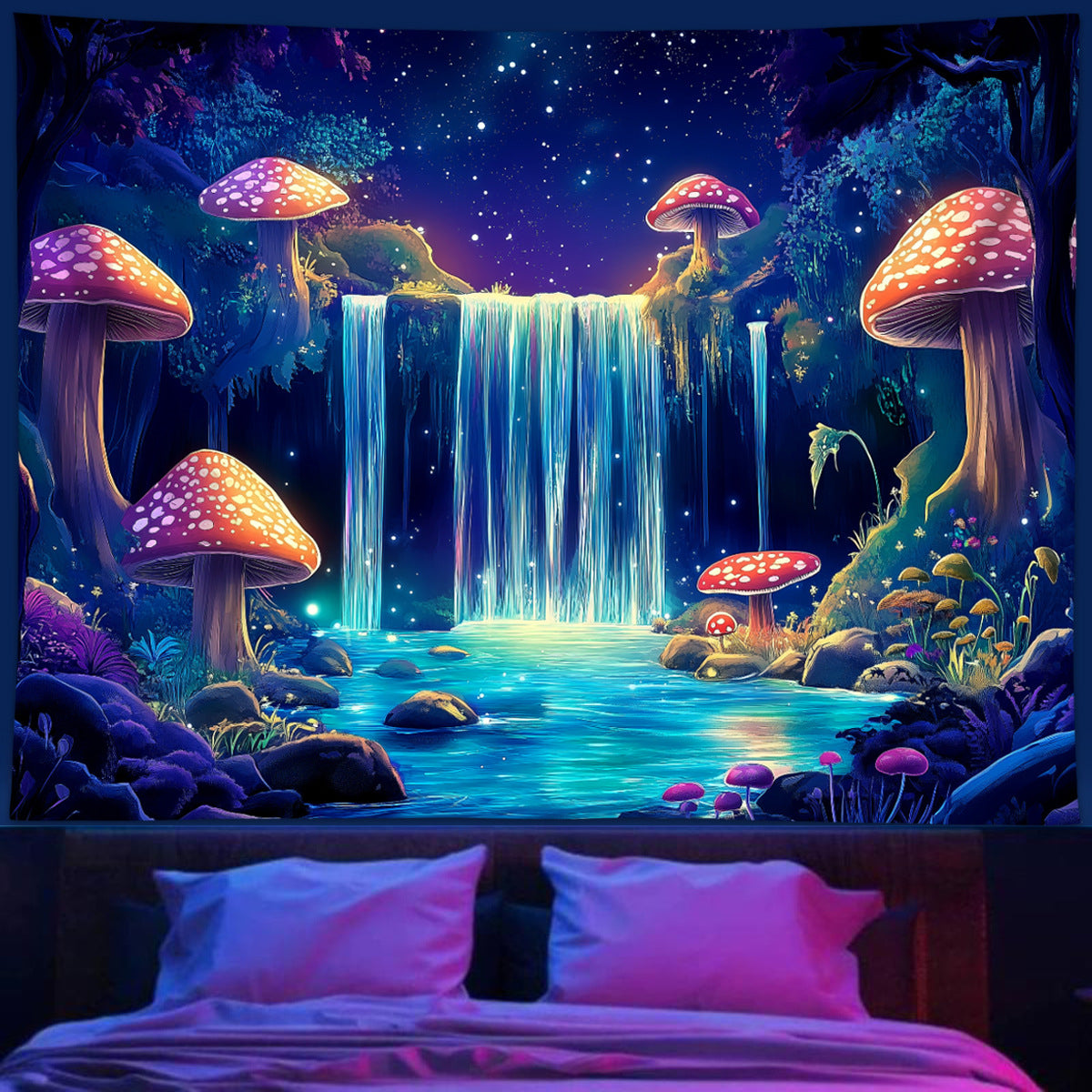 Enchanted Mushroom UV Rective Tapestry: Transform Your Space into a Magical Midnight Wonderland