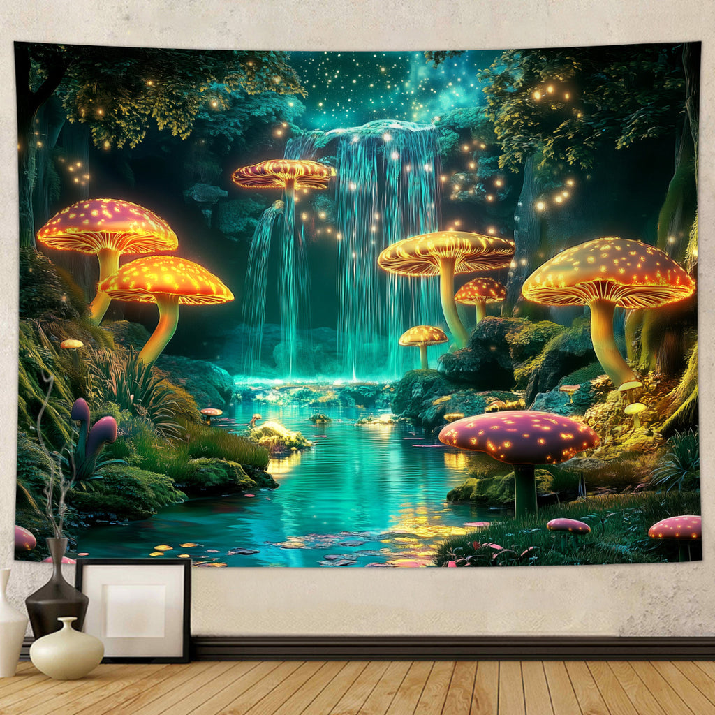 Escape to a realm where glowing mushrooms hum with quiet luminescence, a starlit waterfall cascades into a shimmering pool, and every leaf whispers secrets of ancient forests. Our Enchanted Forest Tapestry isnât just decorâitâs a portal to a dreamscape that turns any room into your personal sanctuary.