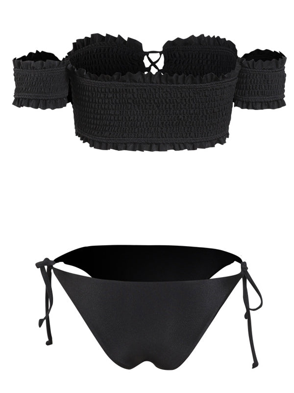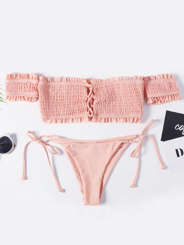 Bikini fendu plissé uni