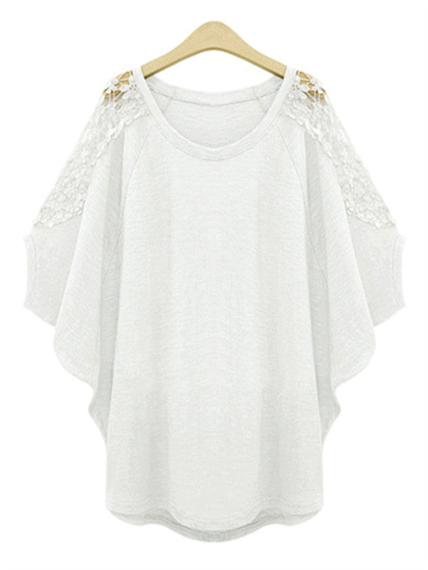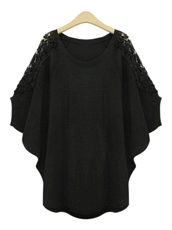 Bat Sleeve Patchwork Lace Loose T-shirt