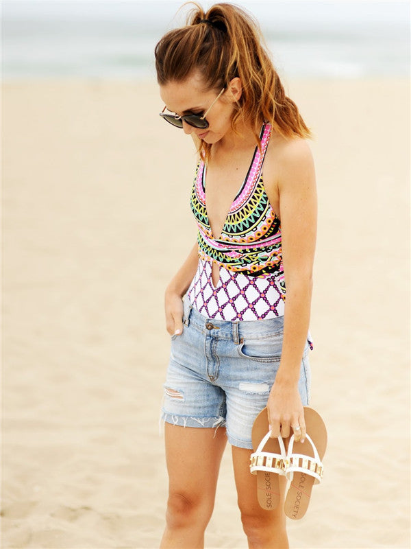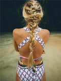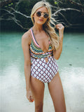 Deep V Printed Cross Back One-piece Swimsuit