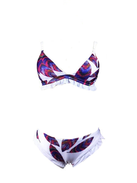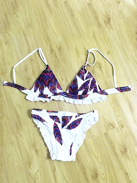 Leaf Prints Ruffled Bikini Set