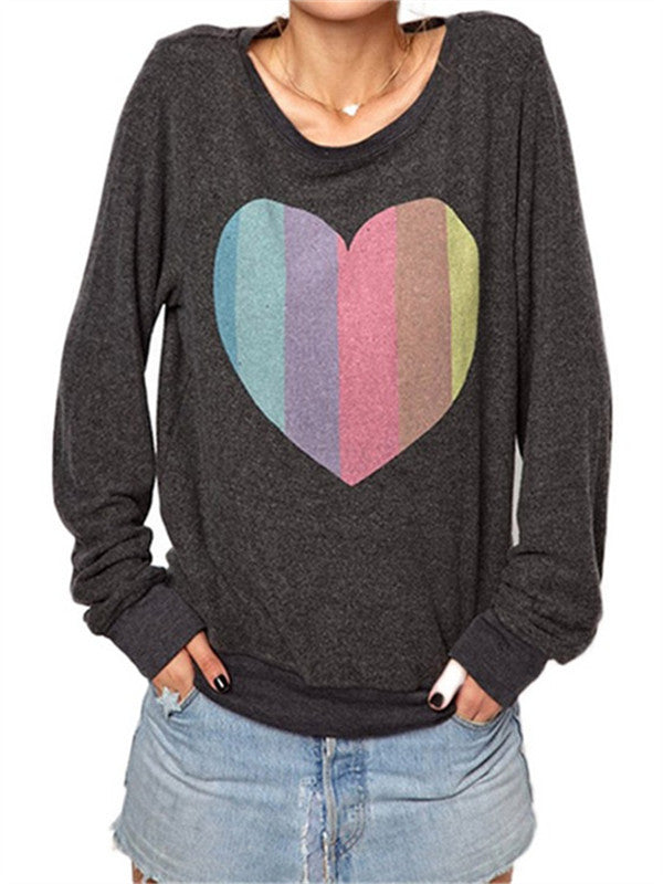 Loose Heart Printed Long Sleeve T-Shirt