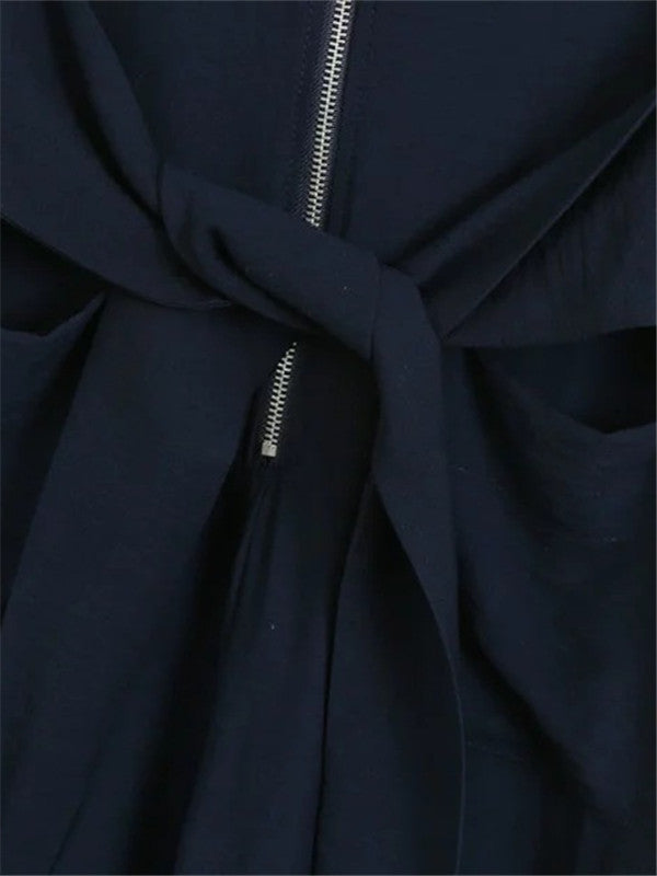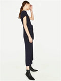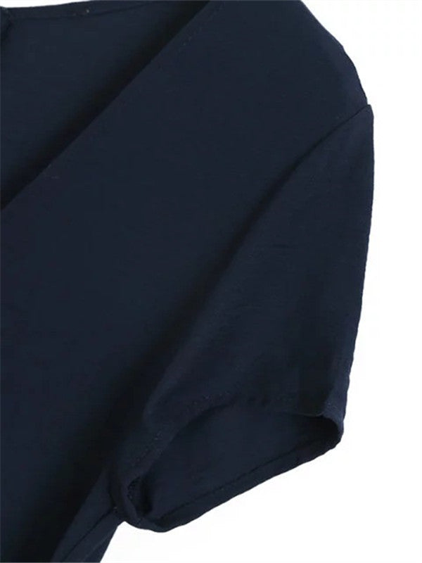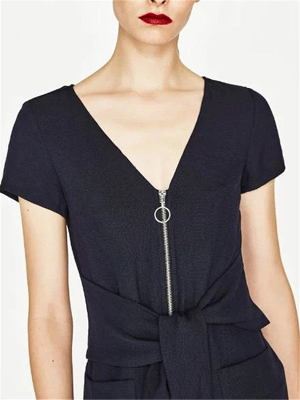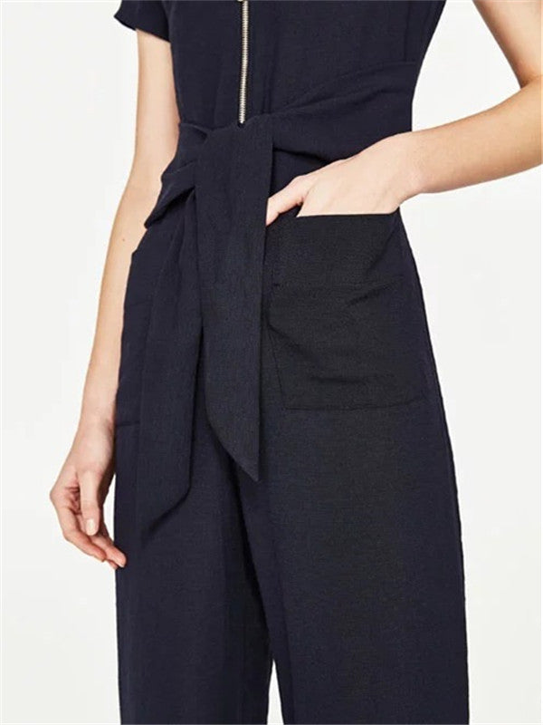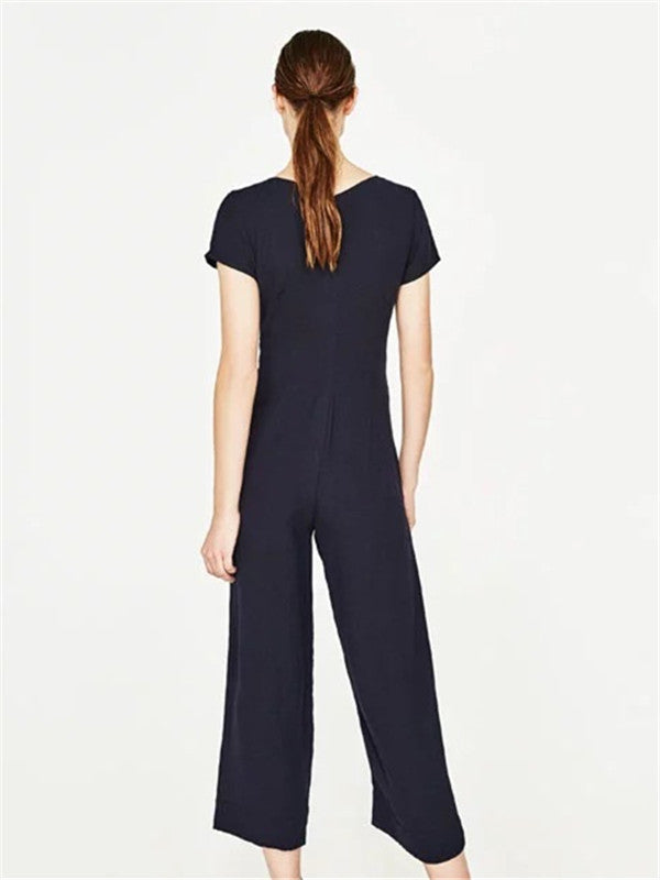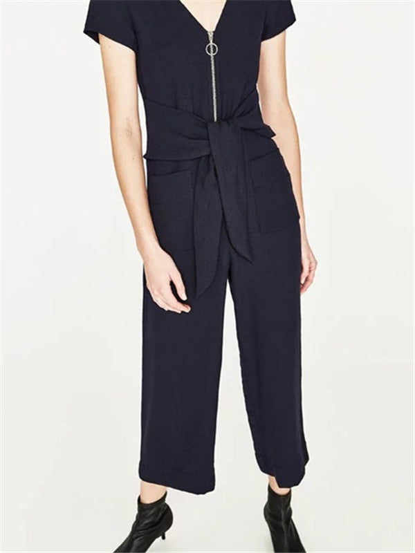 Loose V-neck Short-sleeved Belted Nine-Points Romper