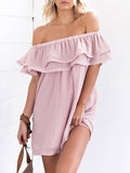 Off-the-shoulder Ruffled Loose Chiffon Mini Dress