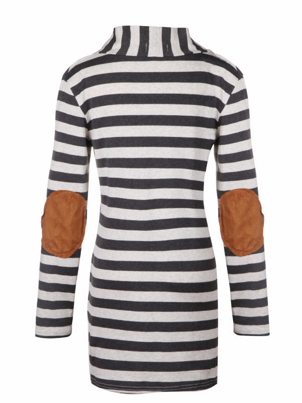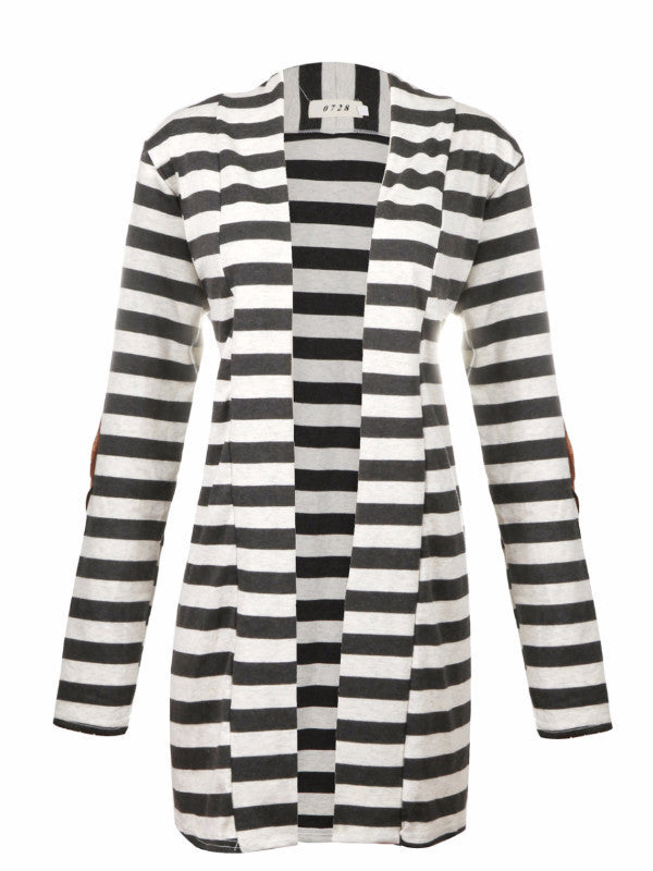 WealFeel Open Front Stripe Cardigan with Elbow Patch