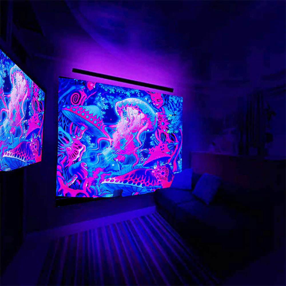 "Please note: This UV-reactive tapestry only glows under a UV light, which is not included and must be bought separately."