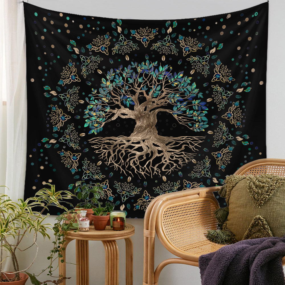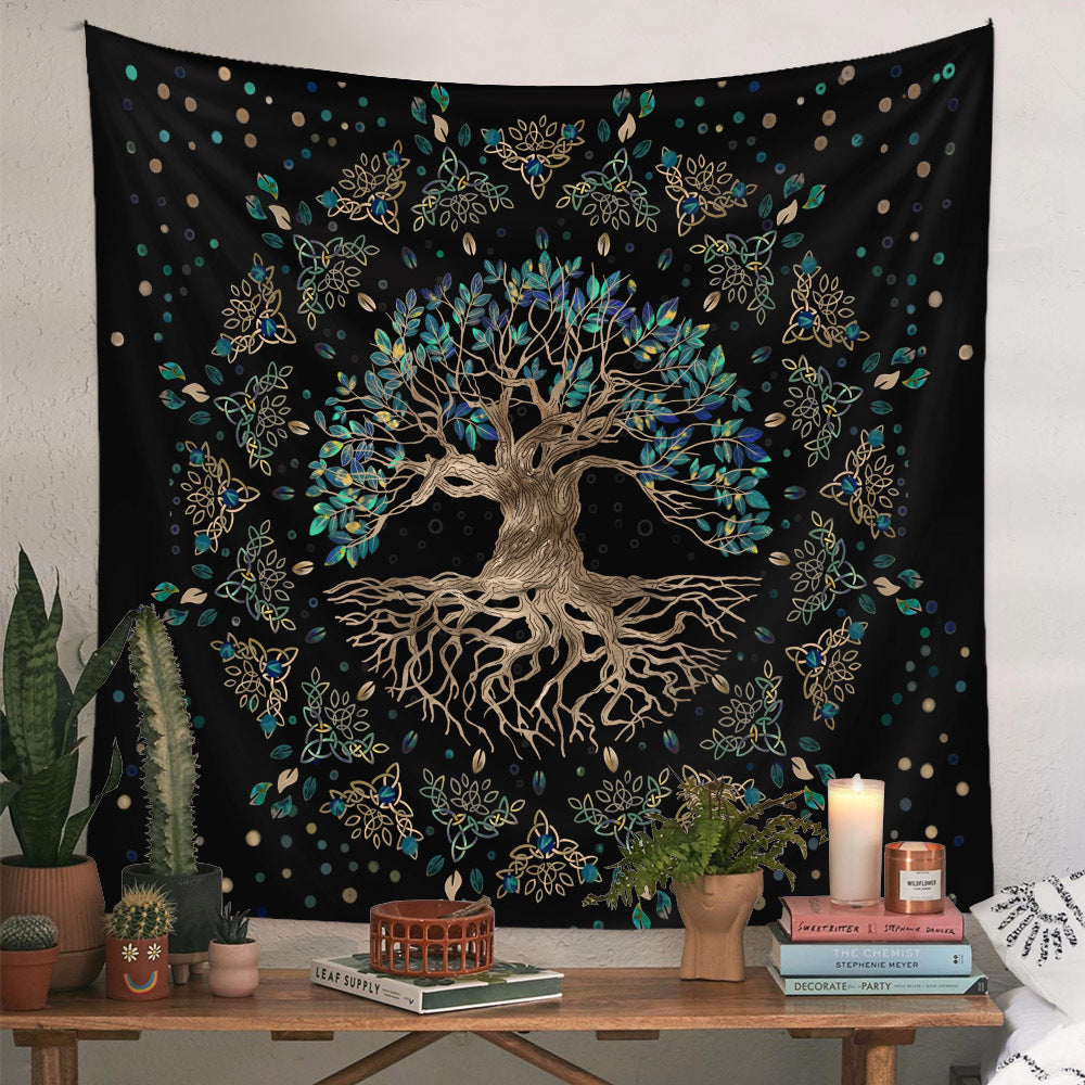 Inspired by ancient Aztec and Celtic solar/lunar calendars, this tapestry merges: