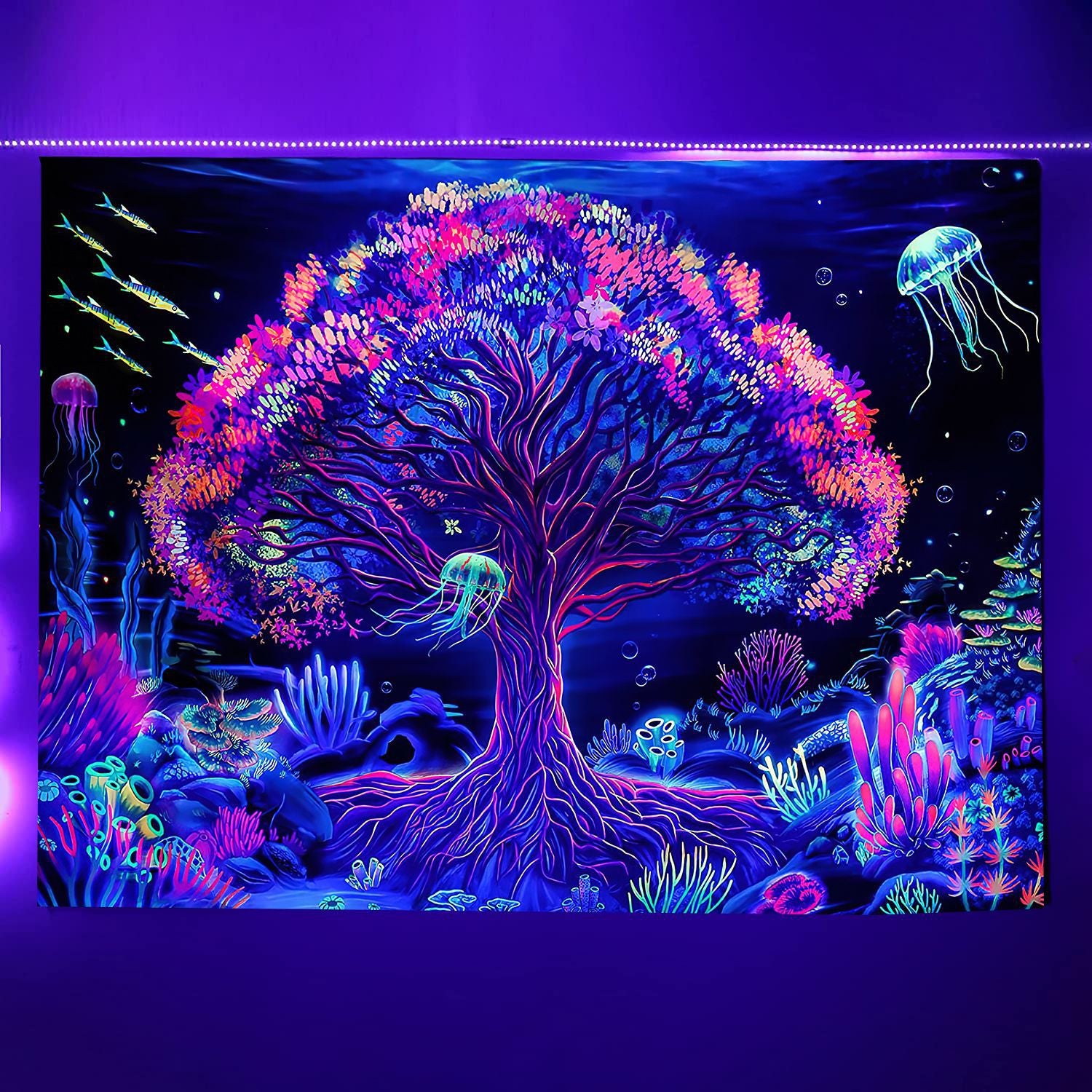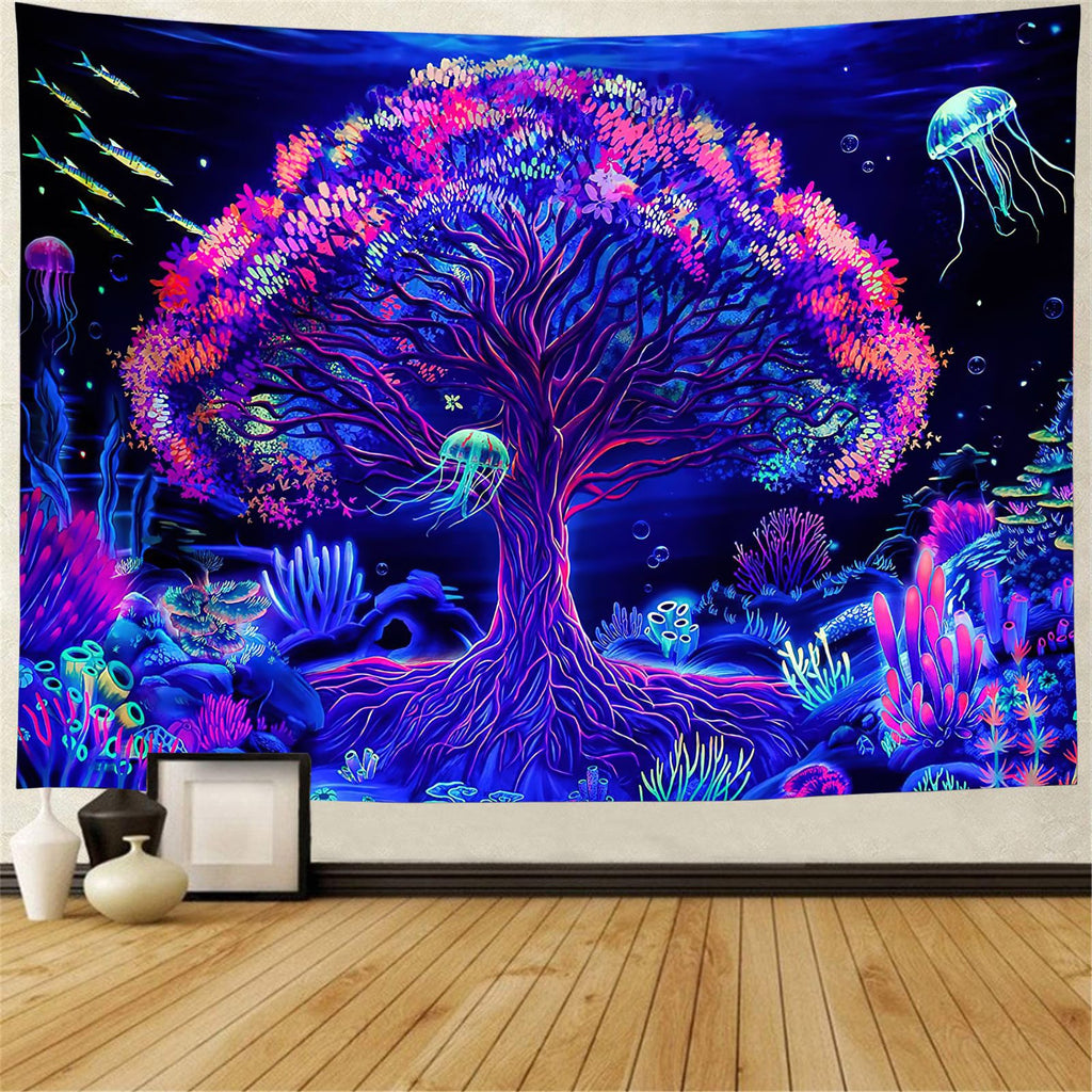 Underwater Fantasy Tree BlackLight UV Reactive Tapestry