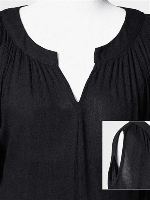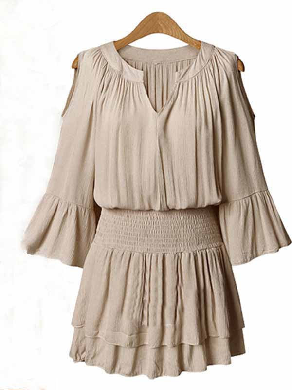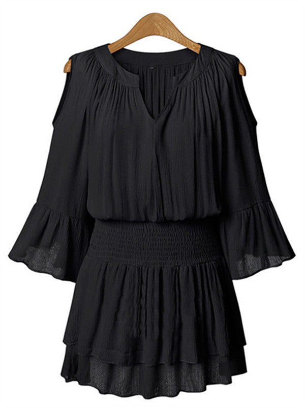 V-neck Elbow sleeve Waist Loose Chiffon Dress