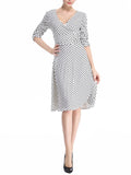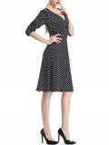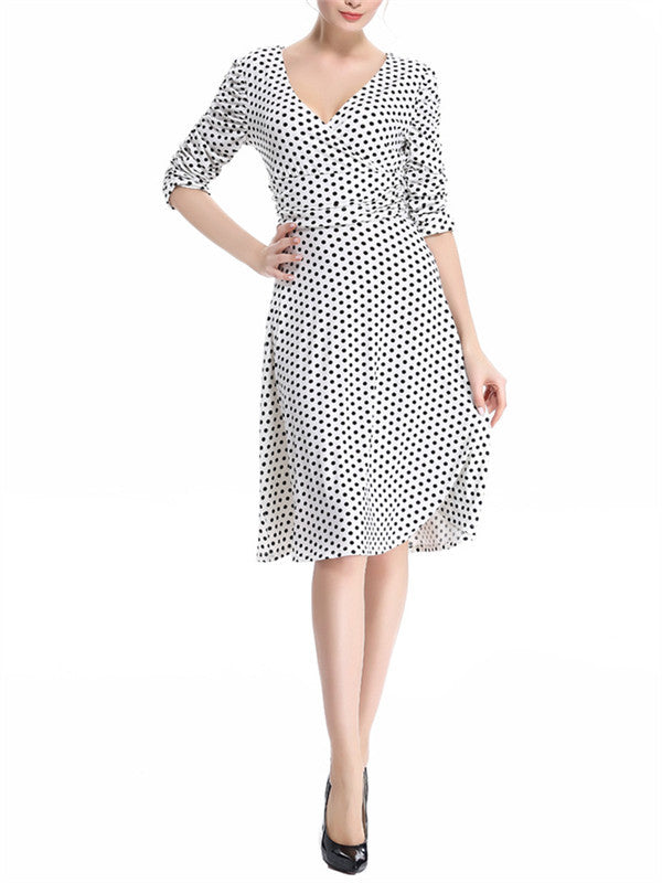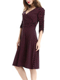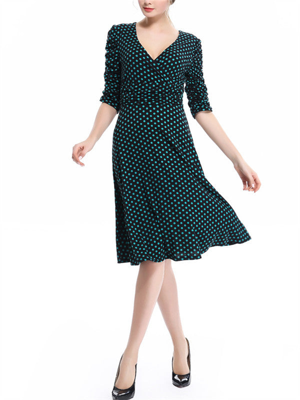 WealFeel Solid color Small dots Deep V-neck Large Swing Dress