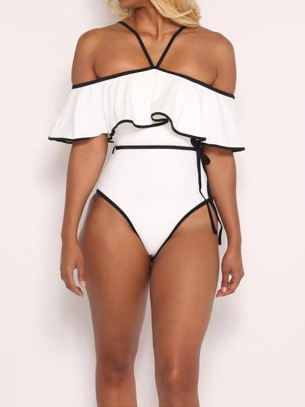 White Off the Shoulder One-Piece Flouncing Swimsuit
