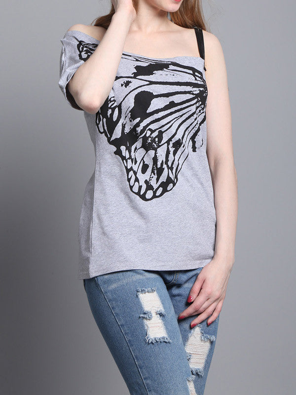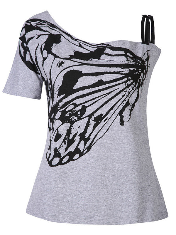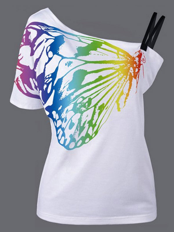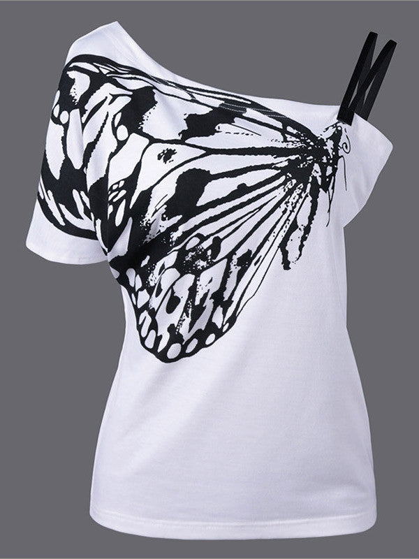 Women's Butterfly Print One Shoulder Casual Tops