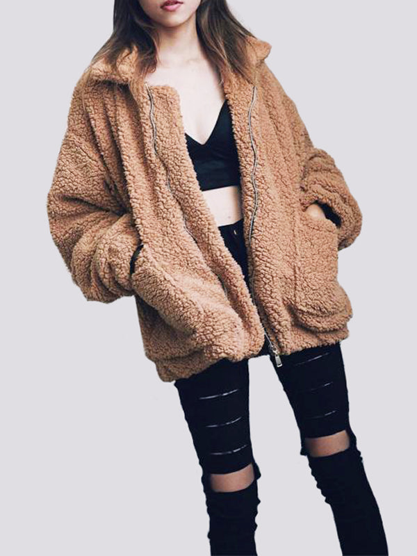 Womens Casual Solid Color Zipper Loose Jacket Coat Outwear